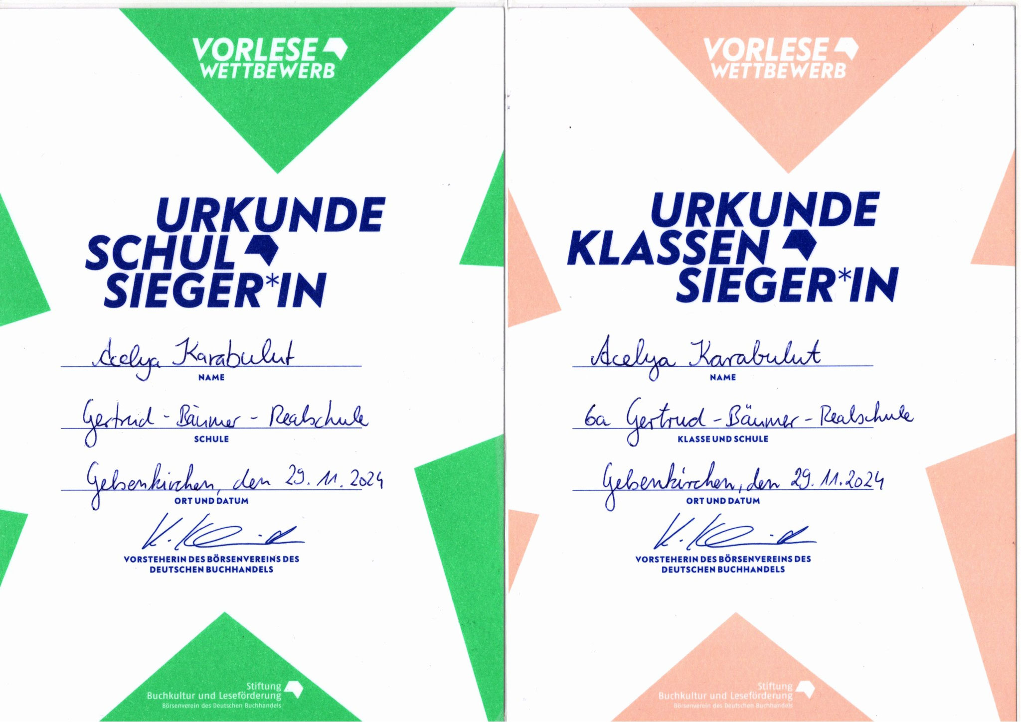 📚Unsere Schülerin Acelya Karabulu hat den Klassen- sowie den Schul-Wettbewerb und am 15.02.2025 den Stadtentscheid Gelsenkirchen, sowie am 22.03.2025 den Bezirksentscheid Münster-West im Vorlesewettbewerb gewonnen. Herzlichen Glückwunsch Acelya! 🏅🎉